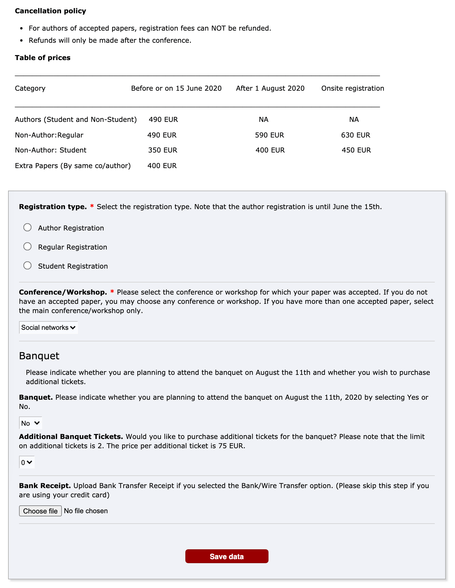 8. Attendee registration and online payment in 14 currencies (powered by EasyChair Registration)